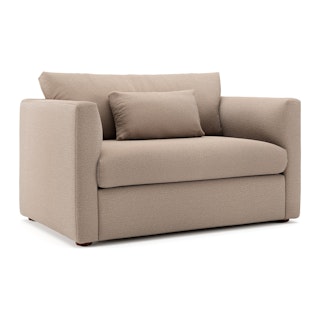 How do you want to feel? Elevated. Comfortable. Calm. Collected. With clean details and pleasing design heft, the Marina sleeper lounge chair manages to feel at once laid back and put together. Generously padded seats and armrests encourage long periods of meandering; fold out that memory foam mattress for a more serious nap. Upholstered with our super soft Bouclé fabric, the Marina is low-absorption with a signature bouncy texture. Throw on your favorite 90s romcom and bask in a little nostalgia.