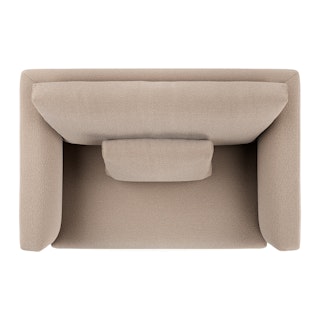 - Upholstered in a soft bouclé fabric