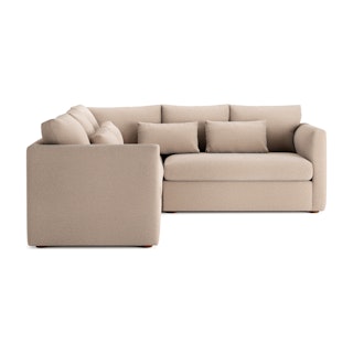 How do you want to feel on your sofa? Elevated. Comfortable. Calm. Collected. With clean details and pleasing design heft, the Marina corner sectional manages to feel at once laid back and put together. Generously padded seats and armrests encourage long periods of meandering; bolster pillows make perfect props for a surprise nap. Upholstered with our super soft Bouclé fabric, the Marina is low-absorption with a signature bouncy texture. Throw on your favorite 90s romcom and bask in a little nostalgia.