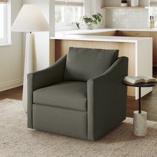 A minimal look with maximum impact... The Landry swivel chair marries laid-back comfort with practical swivel functionality. The result? A lounge chair that's as comfortable hosting movie night as it is cocktail hour. With its sloping sleigh-style arms and clean and straight lines, set atop a 360-degree swivel base, it is a versatile piece that pairs with various interior design styles. Whether against a warm white backdrop, a boldly patterned rug, or draped with your favorite blanket, the Landry adapts to your unique style, adding a touch of easygoing elegance to any setting.