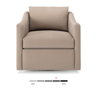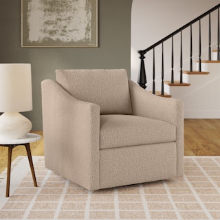 A minimal look with maximum impact... The Landry swivel chair marries laid-back comfort with practical swivel functionality. The result? A lounge chair that's as comfortable hosting movie night as it is cocktail hour. With its sloping sleigh-style arms and clean and straight lines, set atop a 360-degree swivel base, it is a versatile piece that pairs with various interior design styles. Whether against a warm white backdrop, a boldly patterned rug, or draped with your favorite blanket, the Landry adapts to your unique style, adding a touch of easygoing elegance to any setting.