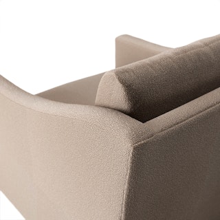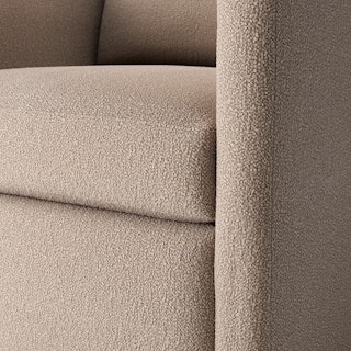 - Upholstered in a soft, non-absorptive bouclé fabric. Bouclé is an excellent choice for those who want an easy-to-care-for, style-forward lounge chair