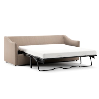 - Upholstered in a soft, non-absorptive bouclé fabric. Bouclé is an excellent choice for those who want an easy-to-care-for, style-forward sofa bed