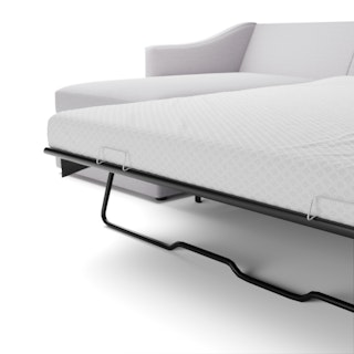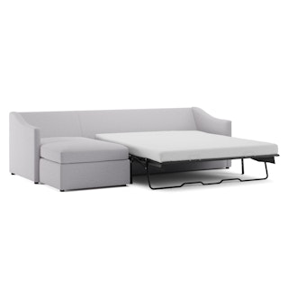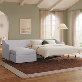 A minimal look with maximum impact... and maximum function. The Landry Sofa Bed marries laid back comfort with elegant details to produce a sofa that is as comfortable hosting movie night as it is your in-laws. Sloping sleigh-style arms and clean, straight lines make it simple to pair this sofa with many styles. With a spacious chest hidden below its chaise seat, and pull-out memory foam mattress, this sofa bed is compact, functional, and comfortable. Almost too comfortable.