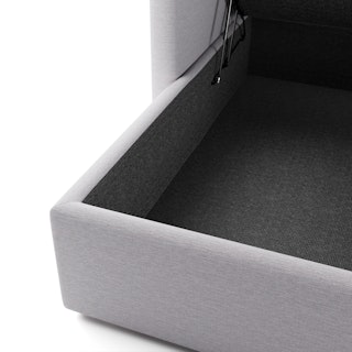 - Spacious storage hidden beneath chaise cushion. Accessible by an easy-to-use hydraulic-assisted lift function