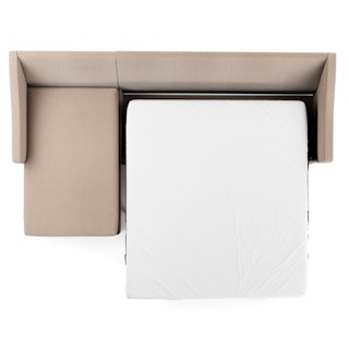 A minimal look with maximum impact... and maximum function. The Landry Sofa Bed marries laid back comfort with elegant details to produce a sofa that is as comfortable hosting movie night as it is your in-laws. Sloping sleigh-style arms and clean, straight lines make it simple to pair this sofa with many styles. With a spacious chest hidden below its chaise seat, and pull-out memory foam mattress, this sofa bed is compact, functional, and comfortable. Almost too comfortable.