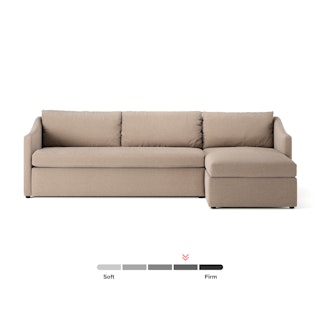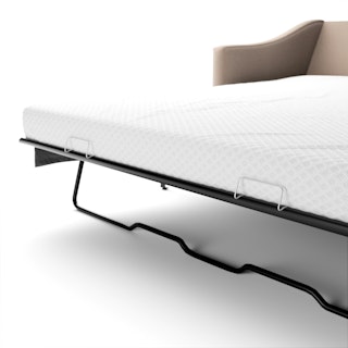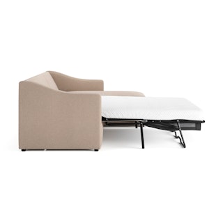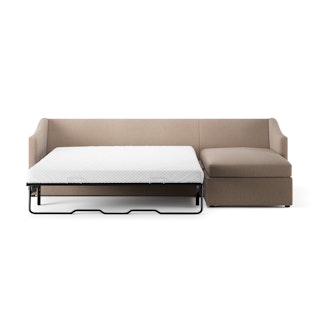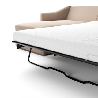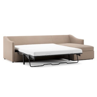 A minimal look with maximum impact... and maximum function. The Landry Sofa Bed marries laid back comfort with elegant details to produce a sofa that is as comfortable hosting movie night as it is your in-laws. Sloping sleigh-style arms and clean, straight lines make it simple to pair this sofa with many styles. With a spacious chest hidden below its chaise seat, and pull-out memory foam mattress, this sofa bed is compact, functional, and comfortable. Almost too comfortable.