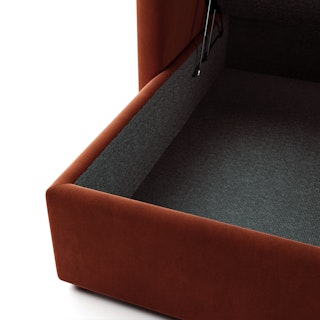 - Spacious storage hidden beneath chaise cushion. Accessible by an easy-to-use hydraulic-assisted lift function