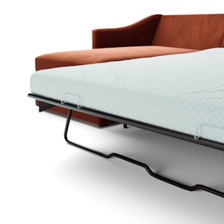 A minimal look with maximum impact... and maximum function. The Landry Sofa Bed marries laid back comfort with elegant details to produce a sofa that is as comfortable hosting movie night as it is your in-laws. Sloping sleigh-style arms and clean, straight lines make it simple to pair this sofa with many styles. With a spacious chest hidden below its chaise seat, and pull-out memory foam mattress, this sofa bed is compact, functional, and comfortable. Almost too comfortable.