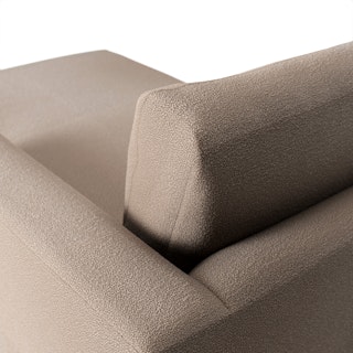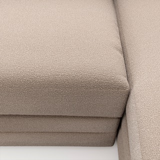 - Upholstered in a soft, non-absorptive bouclé fabric. Bouclé is an excellent choice for those who want an easy-to-care-for, style-forward sectional