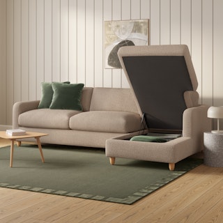 A sectional that can (figuratively) swallow you up... and still have room to store some odds and ends. With its low-profile curvaceous shape and ridiculously cushy cushions, the Vati is such a good-looking sofa you’d hardly know it’s actually a bed and also a treasure chest in disguise. Pop up the chaise seat to reveal a compartment for hiding away your seasonal throw pillows, or a big ol' pile of movie-night blankets. Then, remove the cushions, pull out the memory foam mattress, and voila! Great for when you want a little extra recline or need to house overnight guests. The best part? It’s so inconspicuous, only you get to decide who’s in the know.