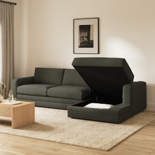 “No drinks allowed on the Sofa” — we were always told. Well look at us now Mom, we have the Riley. With its fold-out memory foam mattress, and a treasure chest hidden below its spacious chaise seat, Riley is ready for just about any situation. Whether you want the ultimate lounger to melt into its plump poly-fill cushions, or lean against its sturdy corner-blocked frame when it's time to sit up and make your point, Riley is gentle but firm.