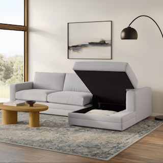 “No drinks allowed on the Sofa” — we were always told. Well look at us now Mom, we have the Riley. With its fold-out memory foam mattress, and a treasure chest hidden below its spacious chaise seat, Riley is ready for just about any situation. Whether you want the ultimate lounger to melt into its plump poly-fill cushions, or lean against its sturdy corner-blocked frame when it's time to sit up and make your point, Riley is gentle but firm.