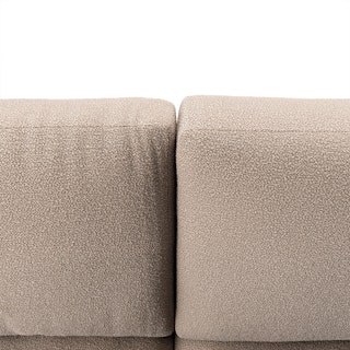 - Upholstered in a soft, non-absorptive bouclé fabric. Bouclé is an excellent choice for those who want an easy-to-care-for, style-forward sectional