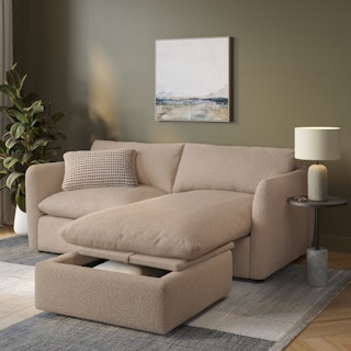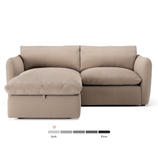 Cloud kingdom, population: you. The Leigh is our comfiest sofa ever, and now it's available as the comfiest hybrid of all: a reversible storage sectional. With a reversible chaise cushion and ottoman for left or right orientation, ample storage space within the ottoman, and stuffed with super-soft foam and duck down, the Leigh is your perfectly-sinkable sofa solution that still looks polished and poised.