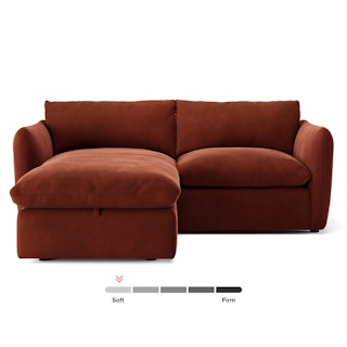 Cloud kingdom, population: you. The Leigh is our comfiest sofa ever, and now it's available as the comfiest hybrid of all: a reversible storage sectional. With a reversible chaise cushion and ottoman for left or right orientation, ample storage space within the ottoman, and stuffed with super-soft foam and duck down, the Leigh is your perfectly-sinkable sofa solution that still looks polished and poised.