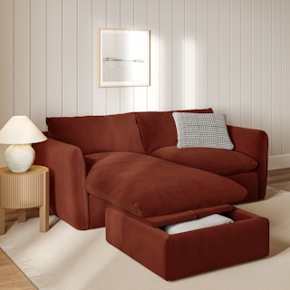 Leigh 86" Velvet Reversible Storage Sleeper Sectional - Hale Rust