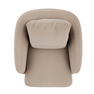 - Upholstered in a soft, non-absorptive bouclé fabric. Bouclé is an excellent choice for those who want an easy-to-care-for, style-forward lounge chair