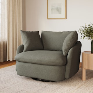 Cloud kingdom, population: you. The Leigh Grand swivel chair is the bigger brother, boasting an extra 14" in seat depth alone — nap central, we know. With thoughtful details that make it the perfect place to put your feet up and read/watch a show/stare into the middle distance. Upholstered with stain-resistant LifeGuard fabric, the Leigh is here to help you rest easy.
