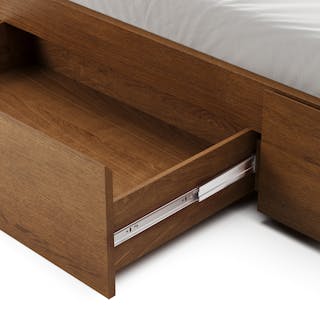 The strong, silent type. The Leif storage bed embodies the classic tropes we associate with Scandinavian good looks: tall, blond, sturdy, impeccable posture. But it's not all good looks and clean lines; it's also soft-spoken and sensitive to your (storage) needs. Featuring four soft-close drawers — two on either side, it boasts some serious storage capacity. Perfect for that extra set of sheets, or two or three...