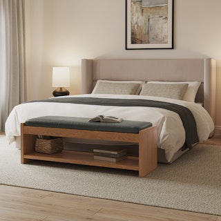 Studied simplicity. The Cassie bench is composed of simple lines and beautiful materials. With plentiful shoe storage and a foam-padded cushion, the Cassie bench adds functionality to your entryway and a comfortable spot to take a load off.