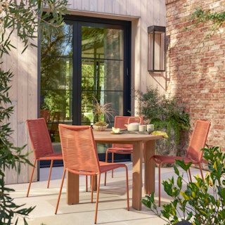 Experience the perfect pairing. The Daphne table, crafted entirely from solid eucalyptus, features soft, rounded edges, a lightweight, durable build, and an integrated umbrella dock, making it ideal for shaded outdoor gatherings. Complementing it, the Zina chair showcases a robust metal frame and artfully strung rope seating, offering both contemporary style and lasting comfort. Suitable for both indoor and outdoor settings, this bundle brings versatility, sophistication, and enduring quality to any space—whether entertaining guests on the patio or enjoying a peaceful breakfast in the sun.