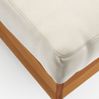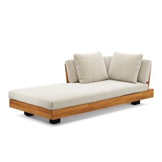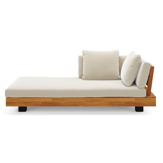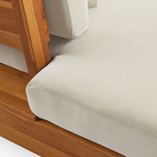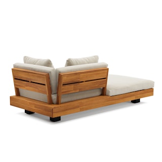 Stay a while. The Lubek chaise is built from a solid acacia wood base. The sofa is set close to the ground, encouraging you to really sink into (or even lie down on) those weather-resistant cushions. Dark cushions and super clean lines add to the Lubek’s modern look, while the warmth of the acacia wood makes the sofa easy to pair with any backyard set up. We call this look “low key modernism."
