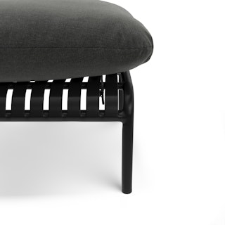 Stripes look good on everyone — but especially on this glossy, powder-coated ottoman. The Sarek is built from solid steel, kind of like Superman. Also like Superman? The exceptional durability of Sunbrella® fabric. Lounge in peace knowing that Sunbrella® offers the highest resistance to both UV fading and inclement weather on the market. Super Sarek.