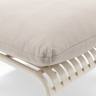 Stripes look good on everyone — but especially on this glossy, powder-coated ottoman. The Sarek is built from solid steel, kind of like Superman. Also like Superman? The exceptional durability of Sunbrella® fabric. Lounge in peace knowing that Sunbrella® offers the highest resistance to both UV fading and inclement weather on the market. Super Sarek.