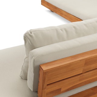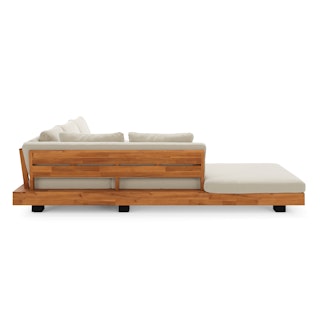 Get low. It will be love at first sight when you lay eyes (and then your whole body) on the Lubek Sectional Set. The L-shaped sectional features a solid acacia wood base and is complimented by structured yet comfortable weather-resistant cushions. Where will you put your snacks, you ask? The Lubek Coffee Table is just the spot. With matching solid acacia wood construction, it’s the perfect companion. This set was meant to be.