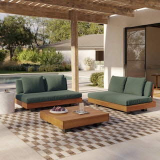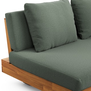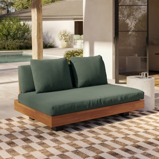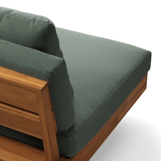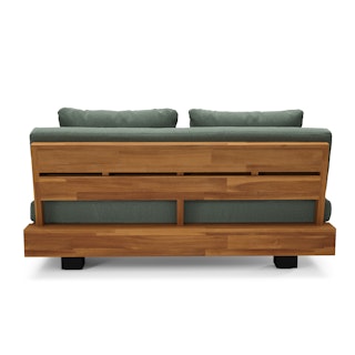 Stay a while. The Lubek loveseat is built from a solid acacia wood base. The sofa is set close to the ground, encouraging you to really sink into those weather-resistant cushions. Super clean lines add to the Lubek’s modern look, while the warmth of the acacia wood makes the sofa easy to pair with any backyard set up. We call this look “low key modernism."