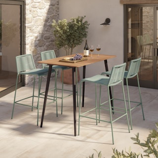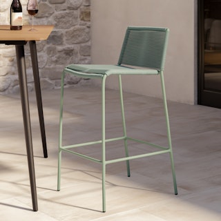 Crafted with woven, fade-resistant polypropylene rope atop a solid metal frame, the Zina Bar Stool Bundle features two of our durable, fan-favorite stools, enough for your happiest hours outside. The streamlined silhouette keeps the look modern, while the seat and back provide structure and support.