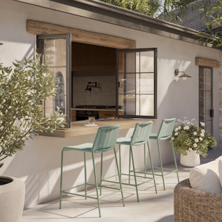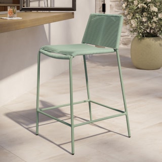 Crafted with woven, fade-resistant polypropylene rope atop a solid metal frame, the Zina Counter Stool Bundle features two of our durable, fan-favorite stools, enough for your happiest hours outside. The streamlined silhouette keeps the look modern, while the seat and back provide structure and support.
