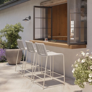 Crafted with woven, fade-resistant polypropylene rope atop a solid metal frame, the Zina Counter Stool Bundle features two of our durable, fan-favorite stools, enough for your happiest hours outside. The streamlined silhouette keeps the look modern, while the seat and back provide structure and support.