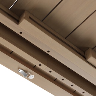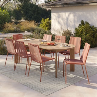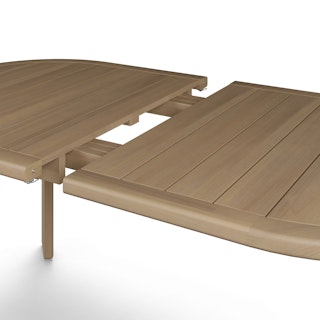 The Daphne sports an all-solid eucalyptus construction with soft, rounded edges — sturdy yet light. Pull the table into its extended position to reveal an umbrella dock, enjoy some company (or solitude!) and a little bit of shade.