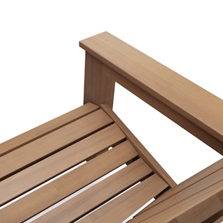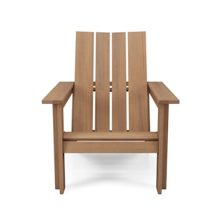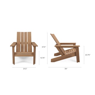 Simple and elegant, the Rena adirondack chair is made from solid eucalyptus wood. This timeless design has been modernized with wide angled planks and dovetail details. Perfect for your fire pit, your deck, or for people-watching on your front porch.