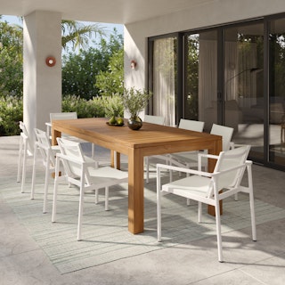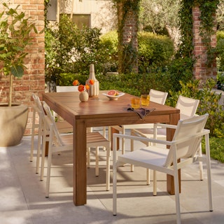 Carefully curated to elevate your outdoor dining area, this bundle brings timeless style and versatility. The Avalon Extendable Dining Table, crafted from solid acacia wood with a rustic weathered finish, is sturdy, reliable, and beautiful—offering ample space for any gathering with its extendable design. Paired with the Tola chair in timeless black, made from powder-coated steel and Textilene fabric, this set is designed to withstand the elements while remaining stackable and stylish. Whether hosting a lively dinner party or relaxing with coffee outdoors, this bundle ensures lasting comfort and elegance for years to come.