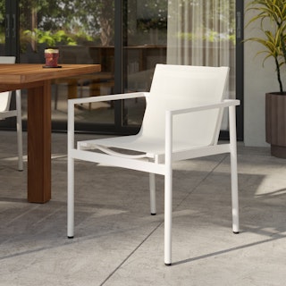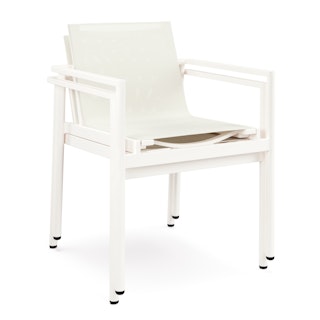 Hardy and good-looking, the Tola chair is made from powder-coated steel and Textilene fabric, making it well-suited to inclement weather. Adding arms brings polish to this piece without sacrificing stackability. Available in three beautiful colors, Tola will be a reliable, stylish patio piece for years to come.