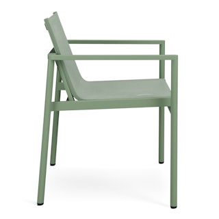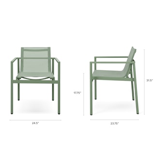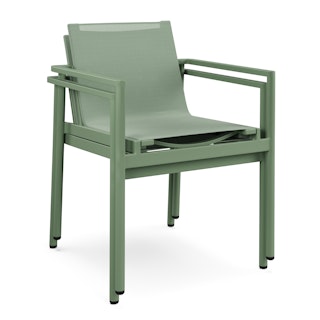 Hardy and good-looking, the Tola chair is made from powder-coated steel and Textilene fabric, making it well-suited to inclement weather. Adding arms brings polish to this piece without sacrificing stackability. Available in three beautiful colors, Tola will be a reliable, stylish patio piece for years to come.