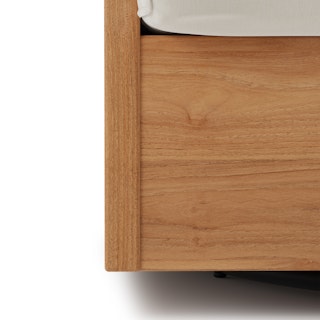 - Solid teak frame. Solid wood is great for detailed designs and for bearing weight