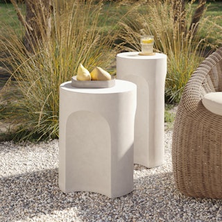 Compact with subtle curve details, the Noah drinks table brings playful functionality to small outdoor spaces. Pair with the Noah side table to play with dimension and height (and to have more room for snacks).
