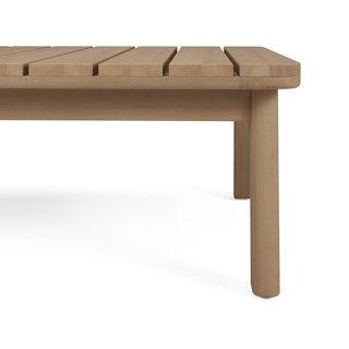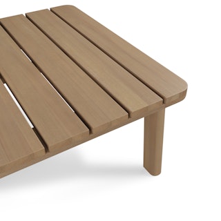 The Elise coffee table embodies the ease we hope for every summer vacation. With a slatted top and thick angled legs, the Elise coffee table pairs beautifully with the rest of the Elise lounge collection and a bowl of chips.