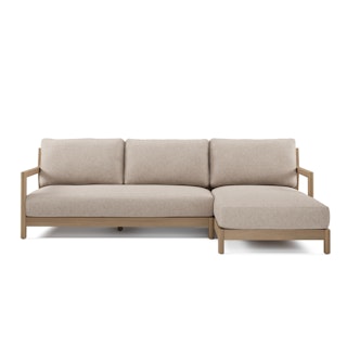 The Elise sectional embodies the ease we hope for every summer vacation. With oversized deep seats and extra-thick cushions, this sectional pairs beautifully with a frosty drink, a bowl of chips, and maybe the Elise coffee table.