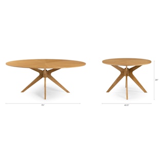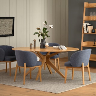 Dinner parties galore. We designed the Conan Dining Table to tick all the mid-century modern boxes: large oval-shaped top, solid wood starburst leg design, and a warm walnut finish. Paired with the angular Iines of the Zola Volcanic Gray Chairs, this dining bundle is packed to the brim with a mid-century modern kind of sculptural interest. Large enough to entertain many, it’s exactly what you need for the type of dinner party where mixed olives and martinis are served before the main course. Get ready for some attention, this is a dining bundle that will earn you a (really good) reputation.