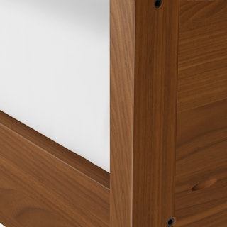 - Made from a mix of veneered and solid wood: veneer is highly durable, whereas solid wood is used to build beautiful details and support weight