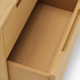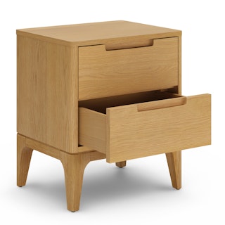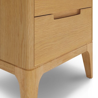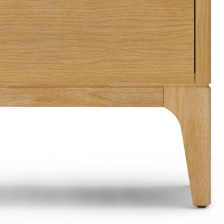 After making waves in the dining room, our Rosin collection is now ready to take on the bedroom—specifically, your bedroom... It's in for a major upgrade. Rosin's signature angled legs harmonize perfectly with the rest of the collection, its smooth, rounded corners and stylish cut-out handles, merge functionality with a hint of elegance. With its timeless coastal aesthetic, the Rosin bedroom collection blends elegance with pure comfort. What else would you need in a nightstand? We consider it covered.