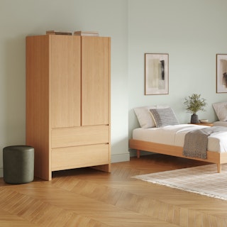 The strong, silent type. The Leif Armoire embodies the classic tropes we associate with Scandinavian good looks: tall, good-looking, sturdy, impeccable posture. With soft-close drawers and ample hanging space, you can rest assured that your Leif not only looks gorgeous, it's also soft-spoken and sensitive to your (safety) needs.