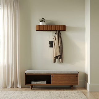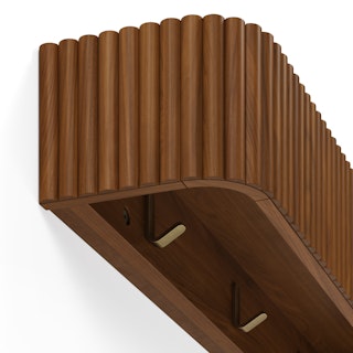 With hidden brass hooks and a fluted exterior, the Liv shelf and coat rack adds a touch of elegance to your entryway. The top tray keeps essentials like keys and wallets easily organized, while the discreet hooks beneath the shelf provide a tidy and stylish spot for coats and bags. Whether you're making a statement or just organizing your entryway, Liv will be a calming presence when the movie starts.