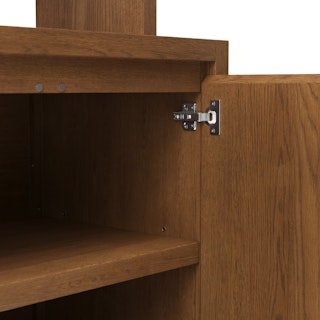 The strong, silent type. The Leif Modular Bookcase embodies the classic tropes we associate with Scandinavian good looks: tall, good-looking, sturdy, impeccable posture. Featuring two soft-close doors, an adjustable interior shelf, and a storage cable management cutout to keep those messy cables organised, you can rest assured that your Leif not only looks gorgeous but is also soft-spoken and sensitive to your (storage) needs.