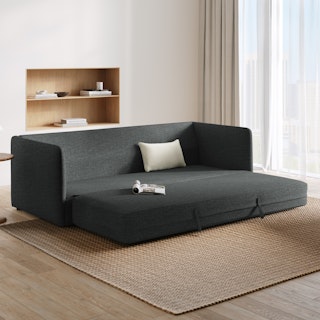 - Effortlessly transforms from sofa to bed by pulling up and out on the two attached straps